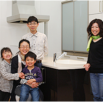 お世主様からひとこと これから先、ずっと暮らしていく家だから、明るさと安らぎを感じる楽しい住まいにしたいと考えました。キッチンが中心のLDKはコミュニケーションが取りやすく、家事動線もスムーズで助かっています。以前から愛着があったヤマハのキッチン。ショールームへ何度も足を運び、LDKの雰囲気に合わせて入念にカラーを選びました。上品な栗皮色がとても気に入っているので、いつまでもきれいに、大切に使っていきたいと思います。また、バスルームはミストサウナを付けて大正解。心身ともにリラックスでき、お風呂の時間が待ち遠しくなりました。小学生の娘と一緒にキッチンに立ちながら、子どもが大きくなっても部屋にこもらず、リビングに集う家族でありたいと願う日々。素敵なわが家をかなえてくれたみなさんに感謝し、この家で毎日を大切に過ごしていきたいと思います。