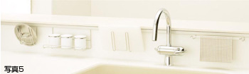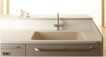 - 独自の人造大理石技術により、お手入れ性を追及し汚れの溜まる凹凸をなくした「ハイバックカウンター」