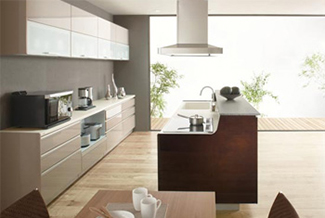 - L型キッチン+ワーキングカウンター アイランドタイプ