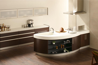ヤマハでは、キッチンの人造大理石カウンターを素材から自社開発し、製造してきました。ヤマハならではの人造大理石技術を活かして、2002年にはカウンターとシンクをシームレスに接合した「マーブルシンク」を発売し、清掃性の高さで好評を頂いています。