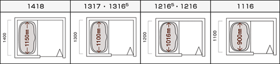 今回、浴室サイズの変更ができない場合でも、できるだけゆったりと入浴していただきたいという考えから、バスタブ内の縦幅にこだわり、業界最大クラスのゆったり感のバスタブを実現しました。例えば浴室サイズ1216タイプの場合は、バスタブ内の縦幅を101.6cm確保したことで、身長160cmの方がゆったりと手足を伸ばせるほどです。バスタブ内の形状や各部分の取り合いを一から見直し、ミリ単位で寸法を追求することで、マンションでのより快適なバスタイムを実現しました。