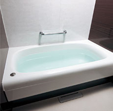 縦幅は長さにこだわり、横幅もゆったりと入れる配慮を施したバスタブ。