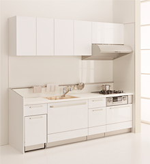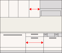 ご自宅のキッチンスペースが、システムキッチンの標準プラン間口より大きい場合、標準プランと同額で、キッチンスペースぴったりに調整いたします。ご自宅のキッチンスペースに合わせてデッドスペースなく、よりカウンタースペースと収納を広く確保できます。