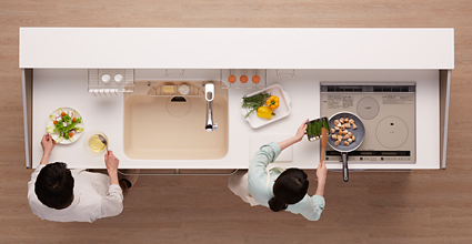 今回、そのような顧客要求に合わせてキッチンのあり方を見直すことで、従来の“私のキッチン”(一人での使用を前提にしたキッチン)から、”家族みんなのキッチン“(複数での使用を前提にしたキッチン)へと進化させました。