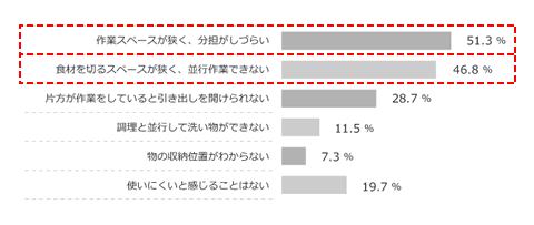 Q2. 2人以上でキッチンに立って料理をするうえで、使いにくいと感じることをすべてお選びください