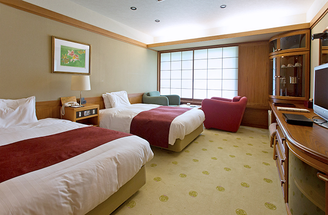今回、4棟ある宿泊棟のうち、人気の高いベッドルームの「葵殿」を改装されました。
