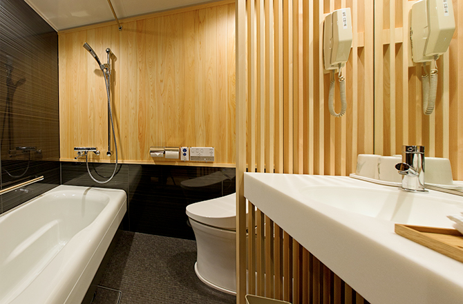高級リゾート施設「葛城北の丸(静岡県袋井市)」が3月10日にリニューアルをした客室「葵殿」に、トクラスの特注バスルームが採用されました。メンテナンス性の高いユニットバスルームでありながら居室性にこだわり、当社の木工技術を活かして天然のヒノキをふんだんに用いた浴室は、日本建築の美にこだわった「葛城北の丸」に相応しい装いです。