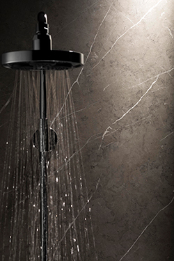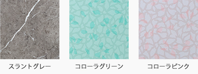 花冠(コローラ)のような華やかでさわやかな柄。光の当たり方で見え方が変化するため、シャワーを浴びる場面や浴槽につかる場面など、シーンごとで空間の雰囲気の変化を楽しめます。