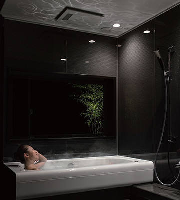 肌ざわりのなめらかなバスタブ「エクラン」や残響音の多い浴室空間に最適化されたスピーカー「サウンドシャワーe」で愉しむ音楽と合わせて、居心地のよさを実現します。