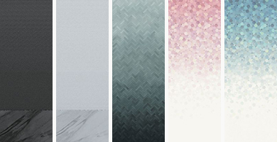 また、「みなもライト」は空間にメリハリをうみ、落ち着いた雰囲気を醸し出します。壁には、風景をモチーフにグラデーションや色の濃淡で変化を付けたデザインを採用。光の陰影で奥行や広がりを感じさせます。