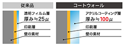 表面のコーティング層が従来品に比べて厚くなめらかなため、映り込みが美しく高級感があります。傷つきにくく、美しさを長く保ちます。