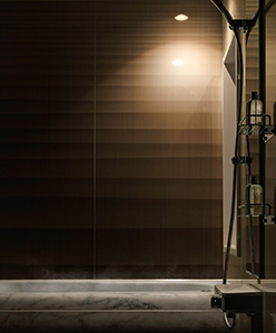 新開発の「マットエクラン」は、「エクラン」の性能はそのままに、深みのあるマットな質感を実現いたしました。長年培った成形技術を基に、新たな製法(特許出願中)で、職人がバスタブ全体をムラなく均質に整えるとともに、天然石のような深みのある表情を施しています。一般的な艶のあるバスタブに比べ、温かみのある肌触りで、しっとりと落ち着いた高級感漂う浴室空間を実現いたします。