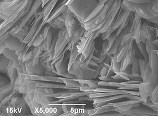 図1 フラックス法により育成した三チタン酸ナトリウム結晶。水に溶け込んだ重金属イオンを層状の結晶表面に効率よく吸着。