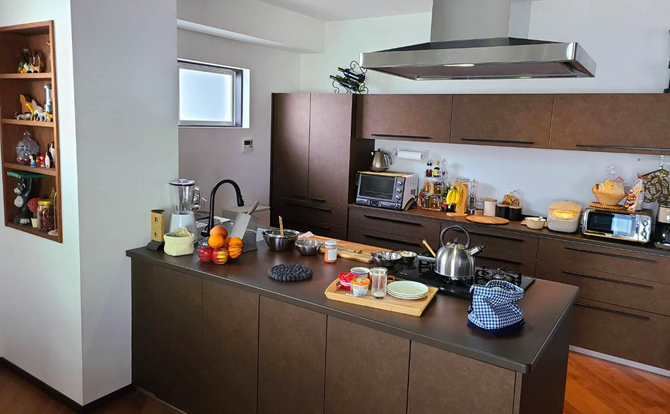 今回、主人公のシロがホームステイする小林真の家にトクラスキッチンを納入いたしました。焼き締め陶の風合いを持つバーストブラウンのカウンターとエイジングゴールドの扉を組み合わせたキッチンは、上質な部屋にマッチしながらも、あたたかみのある空間作りの一端を担っています。
