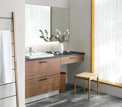 ボウルやカウンター、収納、鏡などを組み合わせて、インテリアに馴染むデザインと、日常の使い勝手の良さにこだわった洗面空間を作ることができます。
