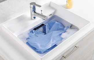 ボウルは、スタイリッシュでありながら、つけおき洗いなど家事に使用しやすい大容量(14L)タイプの「マルチユースベッセル」や、インテリアに馴染むシンプルな「手洗いベッセル」をラインナップします。汚れに強いトクラスの人造大理石素材を使用しており、特に汚れのたまりがちな水栓まわりや排水口は、なめらかな形状のため、お手入れも簡単です。