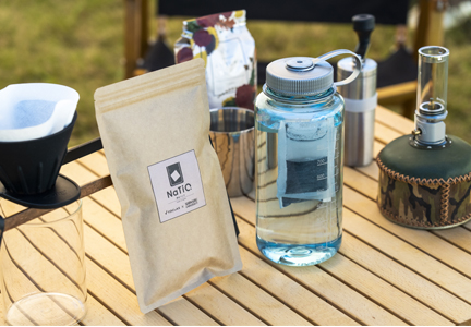 手のひらサイズ(約6cm×約9cm)でかさばらず持ち運びしやすいので、アウトドアシーンに便利。キャンプでの飲用水や料理用水(炊飯・加水調理・コーヒー等)に、安心でおいしい水を使用できます。
