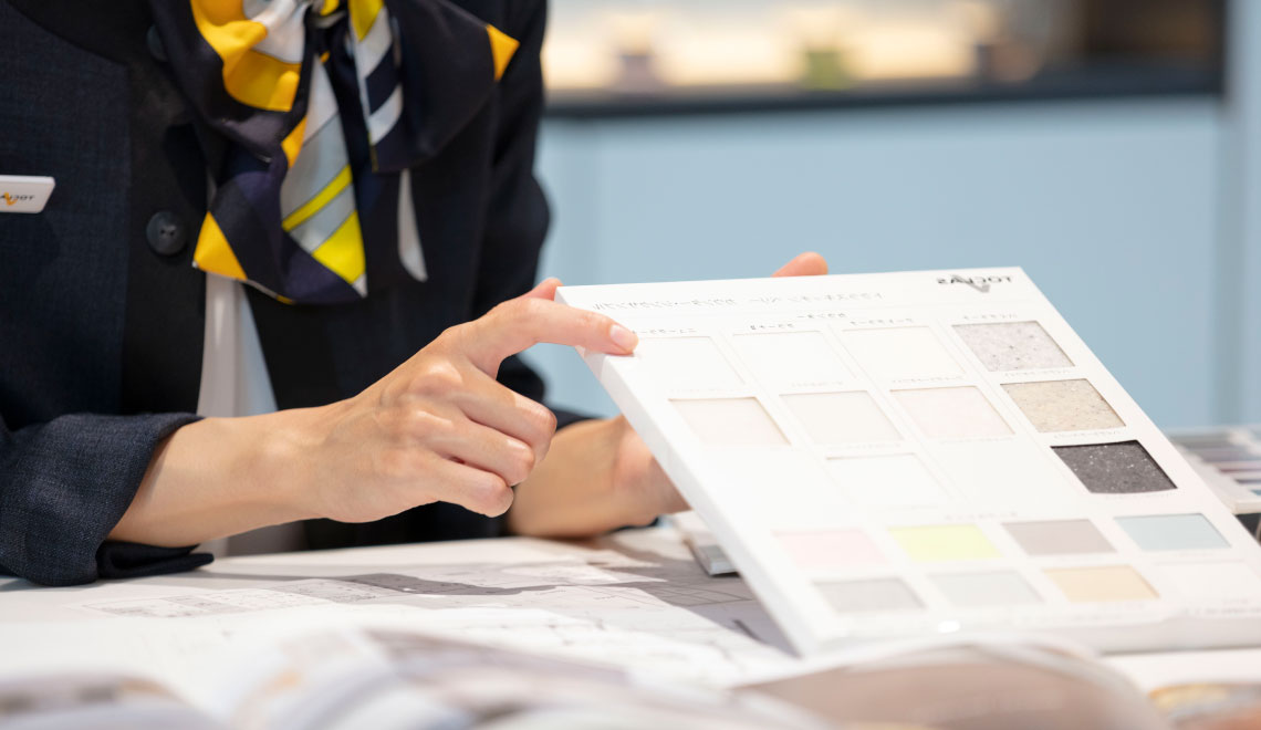 ショールームの主な仕事は、ショールームに来場されるお客様の要望や現状の困りごとをヒアリングし、商品やプランを提案することです。また専用システムを使用した見積書や提案書の作成、問い合わせの電話応対、イベントの企画・立案等を行います。