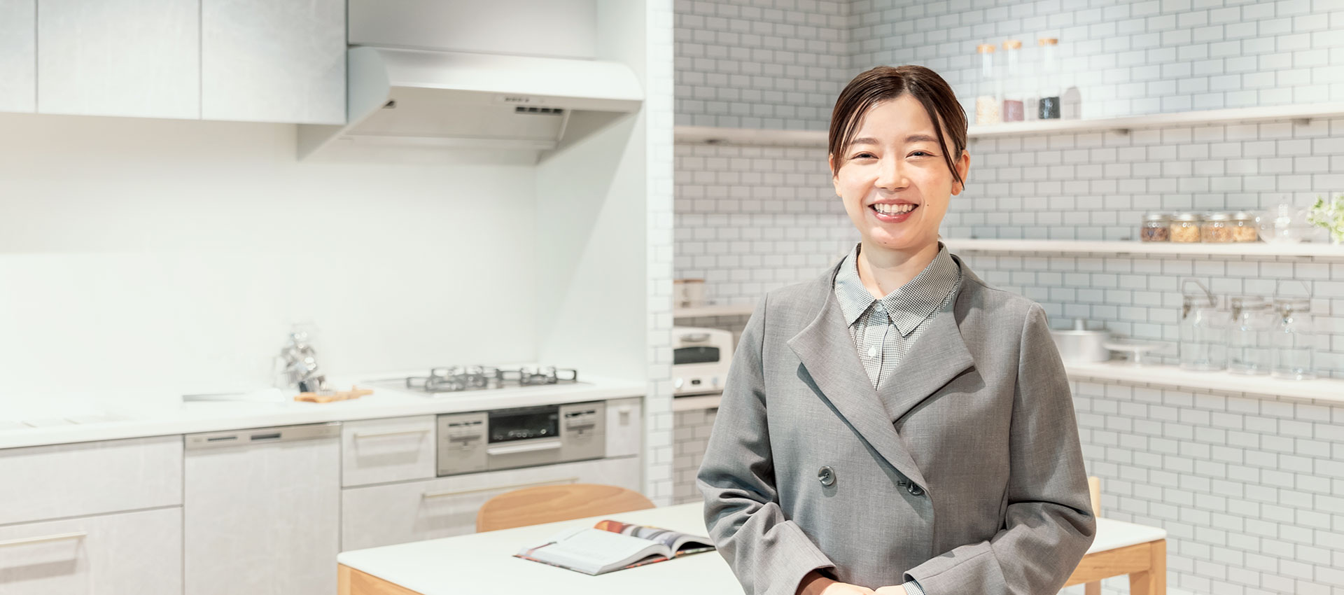 本社企画開発部に異動する前は、埼玉の大宮ショールームに勤務していました。ショールームでは、お客様に商品を理解していただくことはもちろん大切ですが、それ以上にこちらがお客様を理解し、本当に求めている暮らしのイメージを共有する必要があります。広報訴求は目の前にお客様がいないという難しさがありますが、お客様の生の声を聴いてきたショールームでの経験を活かして、一人でも多くの方にトクラスの魅力を届けていきたいと考えています。