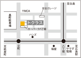 駐車場は、「カーパーク八丁堀」または「安全ガレージ」をご利用ください。 |