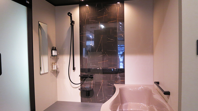 システムバスルームのご購入を検討されているお客様には、実際のお風呂を体験いただけるように準備いたしております。