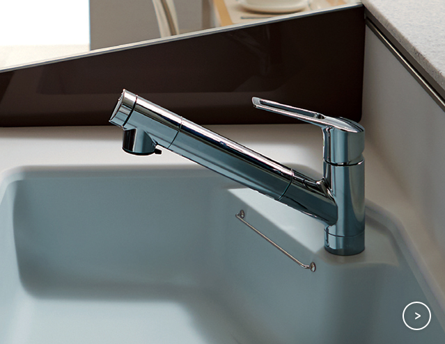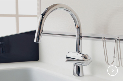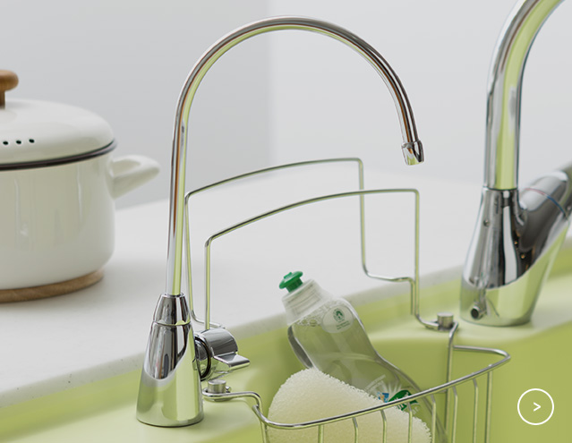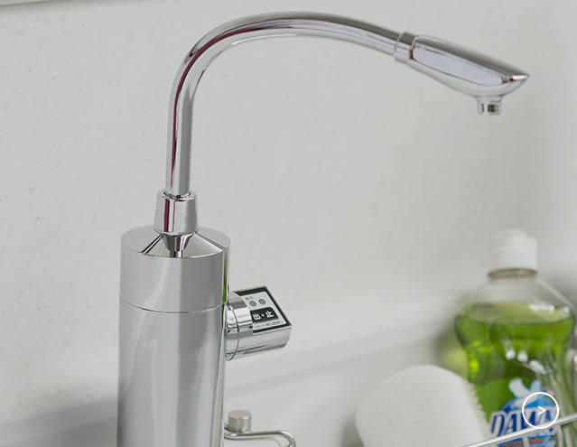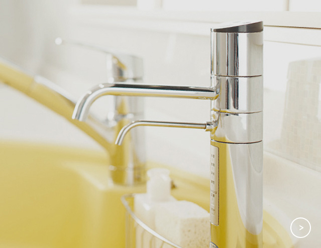 業界初、16+5物質除去を実現する、カートリッジ内蔵型浄水器。カートリッジ交換が、カウンターの上でできるので簡単。(交換目安:4ヶ月に1回)