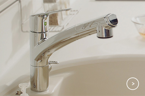 カートリッジは年に1度の交換(目安)なので、手間が少なく、たっぷり使える。シンク下の手の届きやすい位置で交換可能。